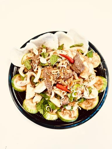 Beef salad w/ Thai egg Plant, Onion Ring(L), Bucket 6 Beer