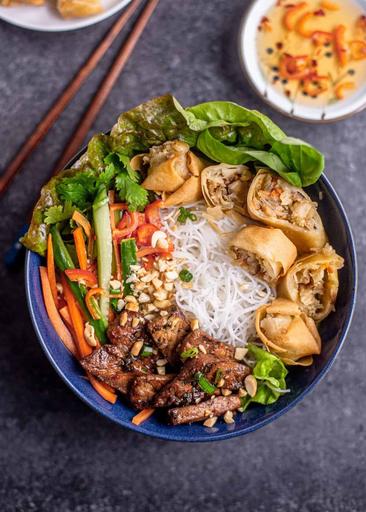 Grilled Pork Vermicelli with Spring Rolls